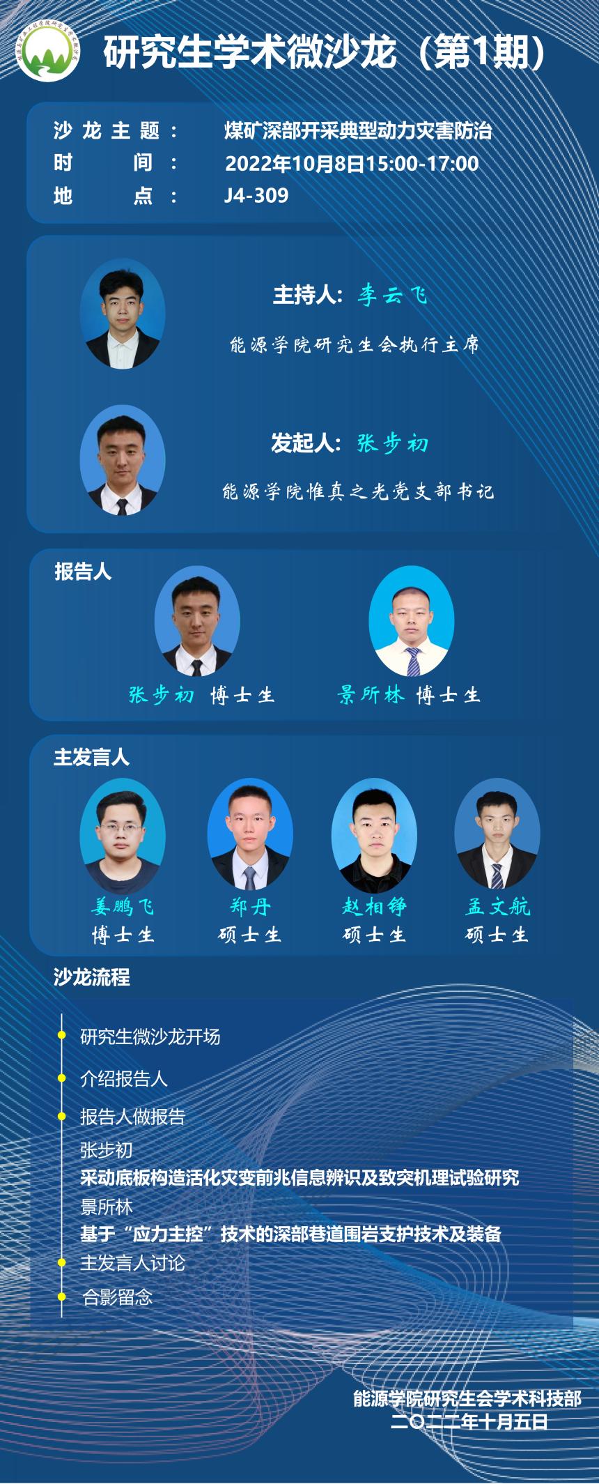 108日,由中文无码 主办,能源与矿业工程中文无码研究生会承办的第1期研究生学术微沙龙“煤矿深部开采典型动力灾害防治”在J4-309成功举办。本次学术微沙龙活动邀请惟真之光党支部书记张步初、博士生景所林做主题报告,中文无码研究相关方向的博士生和硕士生参加,活动由研究生会执行主席李云飞主持。