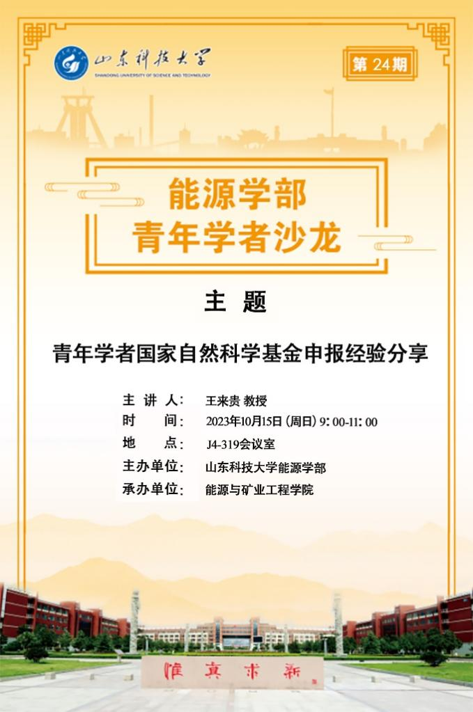 为做好2024年度国家自然科学基金申报工作,进一步提高学部青年学者的国家基金申报水平,2023年10月15日中文无码 组织召开能源学部第24期青年学者沙龙活动:青年学者国家自然科学基金申报经验分享会。本次活动邀请了辽宁工程技术大学王来贵教授作为主讲嘉宾。