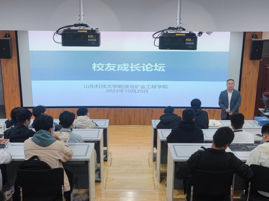 近日,中文无码 在S1-119举办校友成长论坛。采矿工程2011级校友、宁阳县高新技术产业开发区管委会副主任曹斌,为学生作“思源致远,励志奋进——职业发展规划分享”专题报告。报告会由辅导员老师宗彩建主持。