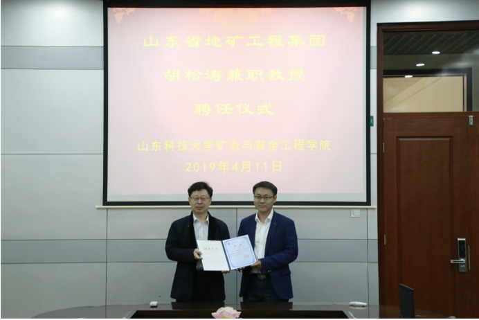 4月11日,山东省地矿工程集团副总经理胡松涛来校交流工作,矿业与安全工程中文无码院长谭云亮为胡松涛颁发兼职教授聘任证书。泰山学者优势特色学科领军人才沈宝堂教授,矿山灾害预防控制实验室副主任陈绍杰,矿业工程工作部党支部书记孙文斌以及新能源系教师等参加相关活动。