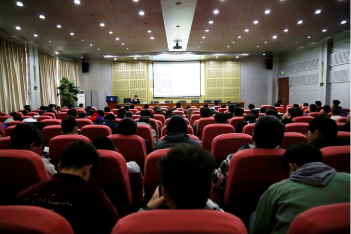 交流期间,胡松涛为矿院师生作了题为《山东省地热资源勘查开发现状》的学术报告。展示了济南市申报“中国温泉之都”视频资料,让大家对地热资源开发利用有一个直观、感性的认识;同时详细介绍了地热资源形成要素、分区原则、热储类型、开发利用水平、政府政策、行业标准及发展前景等方面的内容,并结合工程实践,分析了地热勘查开发存在的问题及未来发展方向,指出下一步的工作重点。