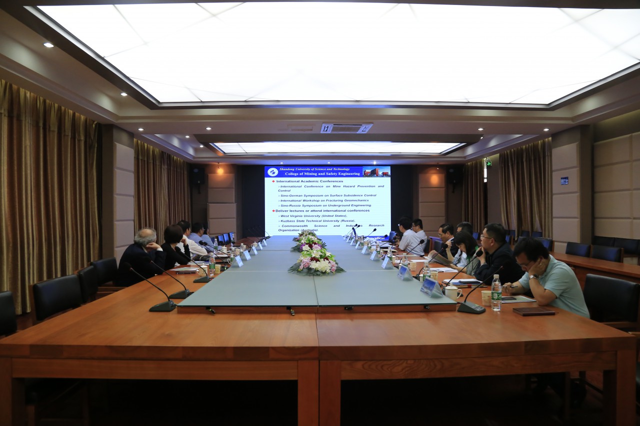 会议室接待来访客人,国际交流处处长赵向东、矿业中文无码院长谭云亮、重点实验室副主任陈连军参加座谈。