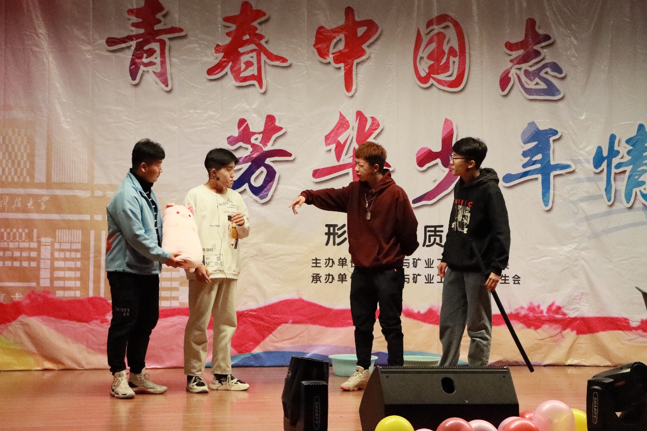 经现场评委打分,采矿20-2班尹兆阳等人带来的《在变老之前远去》获一等奖,工业20-2班徐永琪等人演唱的《健忘村》和采矿20-1班纪酉侗演唱的《男孩》获得二等奖,工业20-1班王晨奕等人的舞蹈《芒种》、采矿20-2班杨昌宝的相声《谁是明星》及采矿20-6班合唱《我和我的祖国》获得三等奖。(庞焕章)