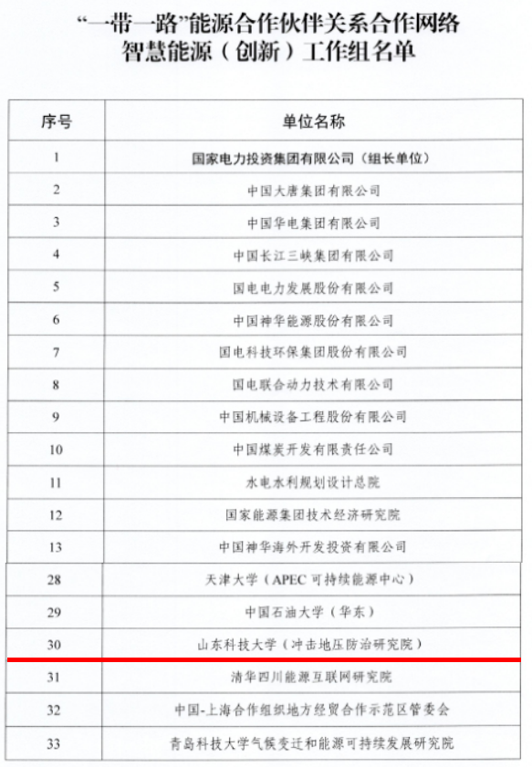 近日,国家能源局发布关于成立“一带一路”能源合作伙伴关系合作网络的通知,中文无码 (冲击地压防治研究院)入选“一带一路”能源合作伙伴关系合作网络智慧能源(创新)和高校(青年)两个工作组成员单位。
