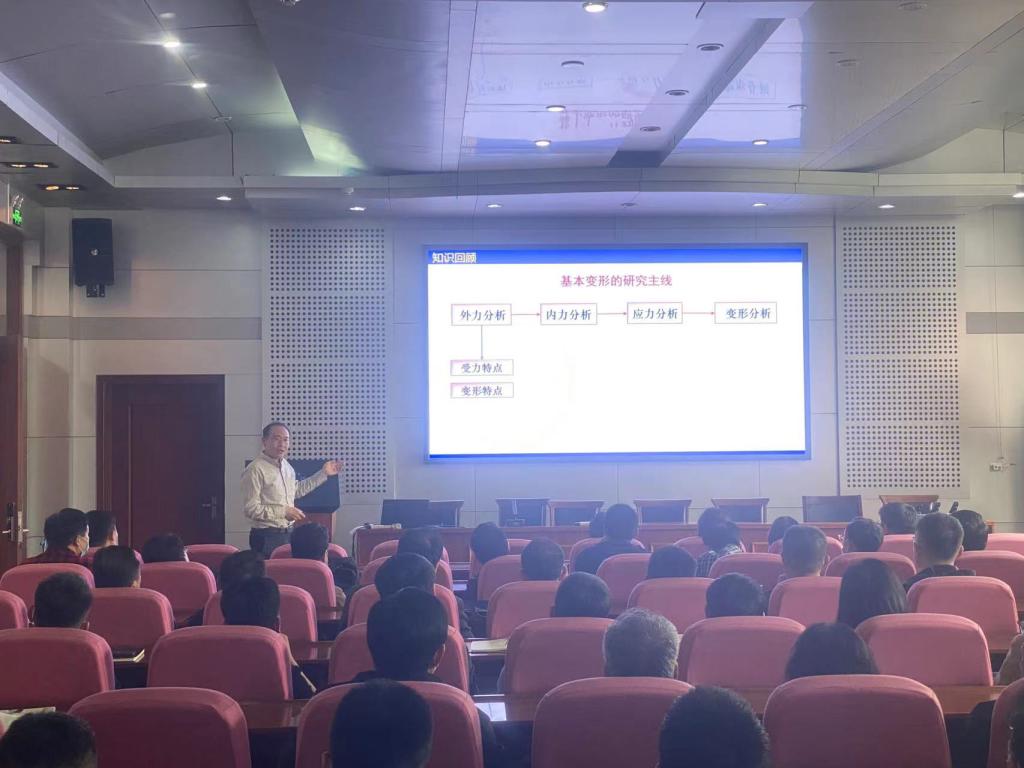本次交流活动分为课程思政经验交流、课堂教学展示两个部分。赵增辉老师从专业课程思政建设内涵、基础力学课程思政设计路径、线上线下混合式教学实践三部分展开讲解,解析如何在课程目标、教学内容、教学方法和教学资源等多个方面融合思政元素,并通过实例讲解如何从工程失效案例、大国成就、人物传记、力学史和方法论、学校成就、体育运动、疫情防控、创新设计、身边问题等多个方面深挖教学案例。李龙飞老师讲授了题为《纯弯曲梁横截面上的正应力》的示范教学课,授课过程中,引入楼层阳台的垮塌案例,增强学生的工程安全意识,回顾中性层从发现到正确位置的确定所经历的200余年研究历程,让学生学习科学家追求真理、勇于探索的科学精神。最后通过北宋李诫提出的关于在圆木中裁出方梁的合理方案引入到PBL小组任务,清楚直观展现如何在课堂上将专业传授和思政元素巧妙融合。
