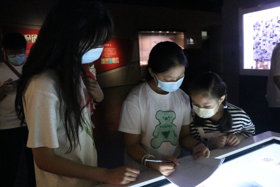 最后,经过与中铁建工志愿者交流后,队员们来到黄河文化沉浸式交互中心进行志愿宣讲,他们将自己在山东博物馆的所见所感倾诉于孩子们,绘声绘色地讲述着黄河的故事,并跟随中铁建工的志愿者们一同为孩子们讲解博物馆内的文物,宣传黄河流域史前文明代表性珍贵文物,展现黄河流域从一万年文化史到五千年文明史的演进历程,让孩子们更好的认识中华文明的起源、形成、发展的历史脉络。
