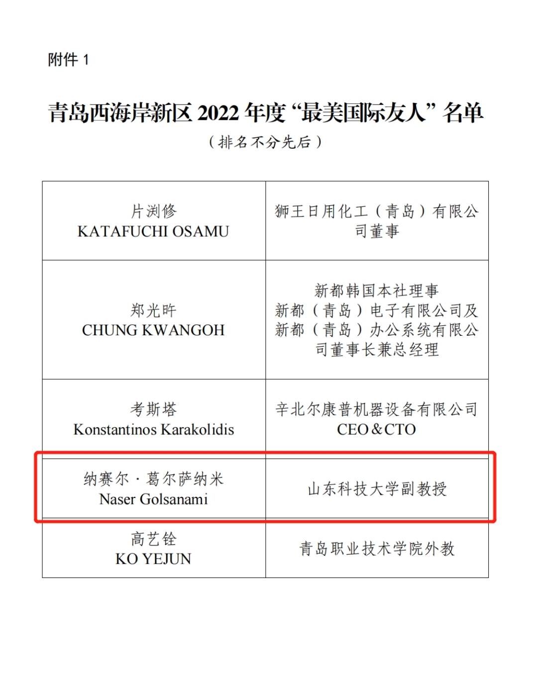 中文无码 教师纳赛尔 荣获青岛西海岸新区2022年度“最美国际友人”荣誉称号