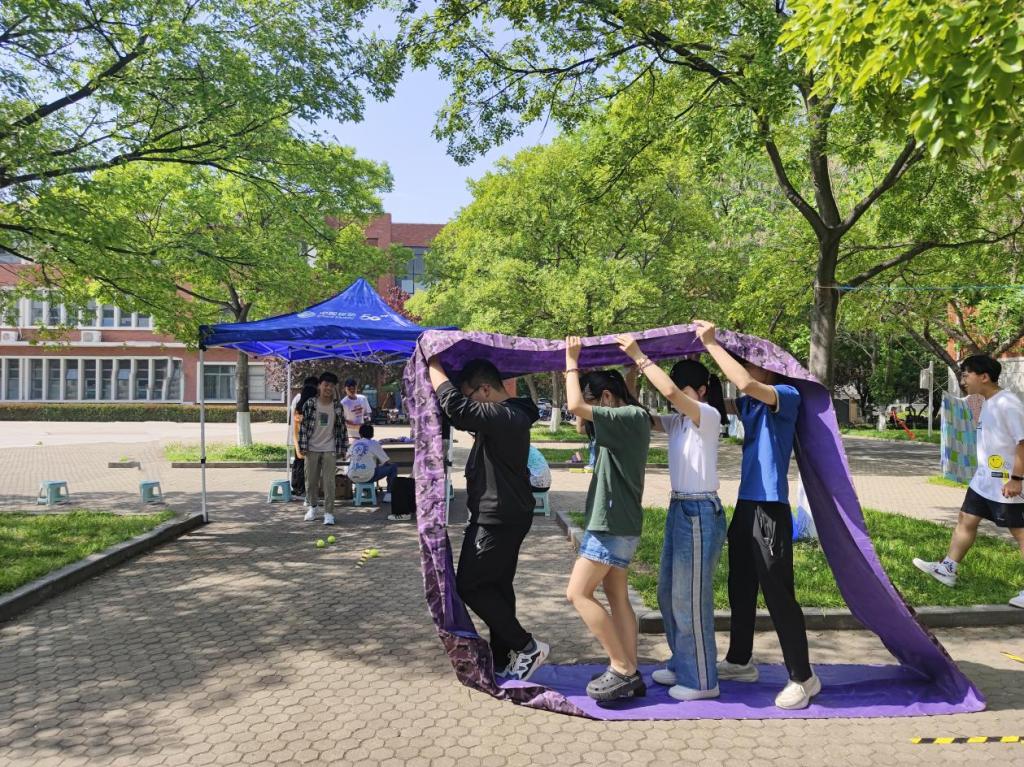 此次趣味运动会将竞技与娱乐相结合,共分为“采”石过河、精准打击、齐心合“力”三个项目,并为参加的同学们精心准备了小奖品。“采”石过河中,三人同时用石头(泡沫砖)过河,到达终点线后将三块石头(泡沫砖)携带跑回起点;精准打击中,需要完成5圈大象鼻子转圈,将网球扔进桶里;齐心合“力”中,由6人组成的队伍站在风火轮布上,一起前进直到最后一人通过终点线。