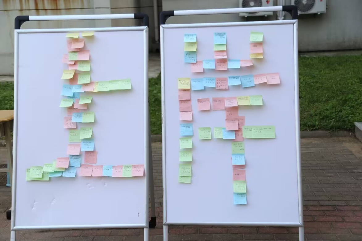同学们在工作人员的引导下,为备考学子写下考研祝福语,并拼凑成“上岸”二字,在众多寄语中不仅有“吾尽吾心,终亦不悔;天道酬勤,何事难为”,“有志者,事竞成,破釜沉舟百二秦关终归楚;苦心人,天不负,卧薪尝胆三千越甲可吞吴”等动人心弦的句子,也有“前路浩浩荡荡,万事尽可期待”,“一‘研’为定”等通俗易懂的句子,将对备考学子的期许展于纸上。