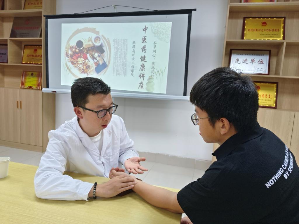 11月6日,中文无码 在“一站式”学生社区嘉源驿站开展以“溯源本草,‘医’路前行”为主题的中医文化讲座及健康服务活动。本次讲座特邀中国中医药健康研究中心健康管理师刘晓明为主讲人,中医文化爱好者参与。