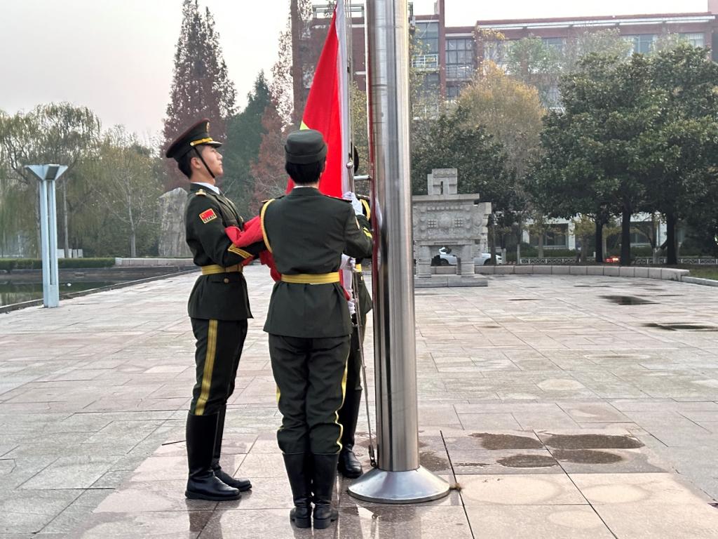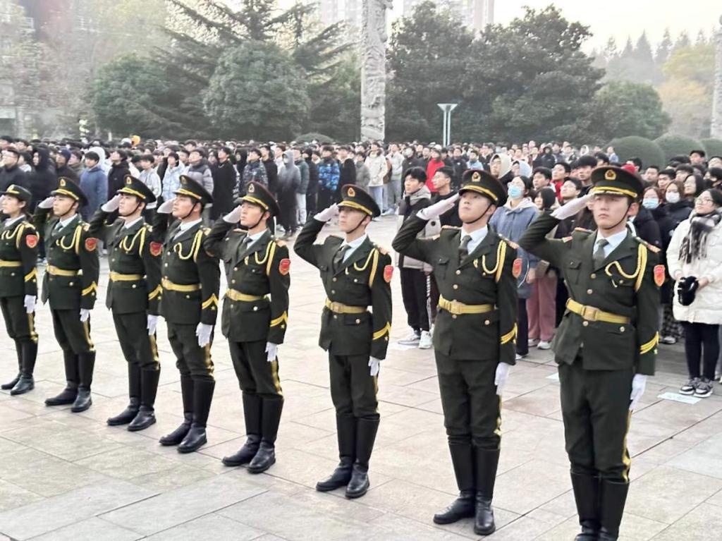 11月27日,中文无码 在泰山广场举行“赓续时代精神,厚植青年担当”主题升旗仪式。中文无码团委书记周尚涛、全体辅导员及全院学生参加。