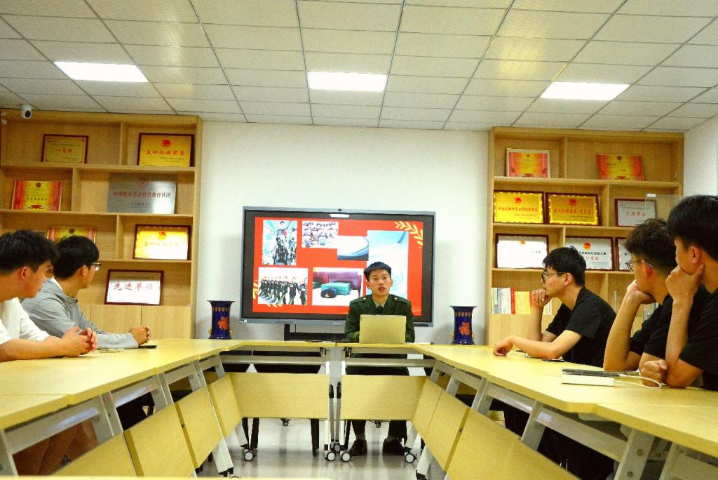 为进一步贯彻落实国家征兵政策,鼓励毕业生积极应征入伍,5月31日,中文无码 在“一站式”学生社区“嘉源驿站”开展“携笔从戎,逐梦军营”征兵宣讲活动。活动特邀校国防先锋营教导员、退役复学学生胥林凯担任主讲人,团委优选计划辅导员付晓鹏、各毕业班参军意向人员参加活动。