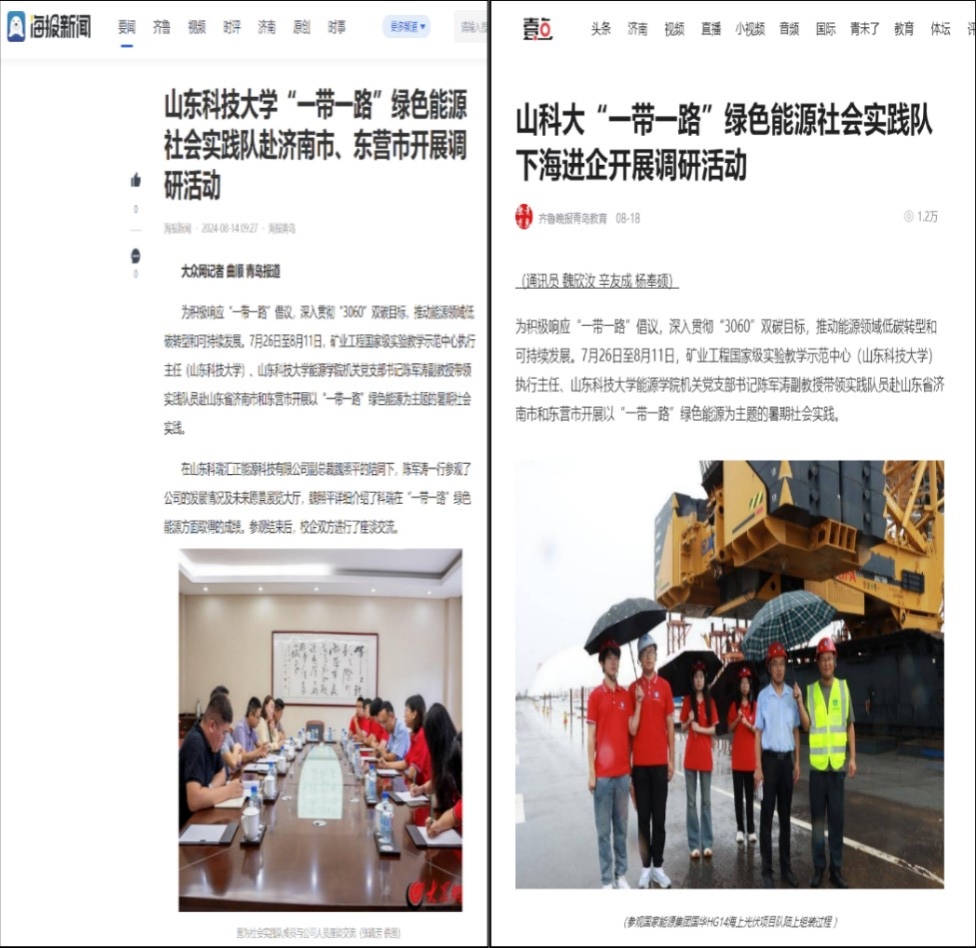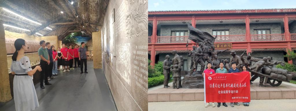 “随嵙筑梦”团队前往临沂市临沭县红色老区朱村、临沂市兰山区华东革命烈士陵园和枣庄市峄城区冠世榴园等地区,从经济发展、文化繁荣、生态文明建设等多个方面进行实践调研,受到人民日报、搜狐网、今日头条、济南教育电视台等30家主流媒体的报道;“红墨交融”实践服务队前往山东省滨州市、菏泽市和日照市深入探寻黄河流域绿色能源发展现状,积极联系黄河流域能源企业,自2021年起,共计前往8省17市,实地走访了8家大型能源集团,42对生产矿井,调研图片、视频等资料1800余张;阳光同行实践团前往临沭县沿着习近平总书记的足迹,参观了朱村历史文化陈展室、八路军老四团钢八连朱村纪念馆等红色革命遗址,认真学习了总书记提出的沂蒙精神,深入了解了“第一碗饺子祭英烈”“枪声就是命令”等红色革命事迹与传统。