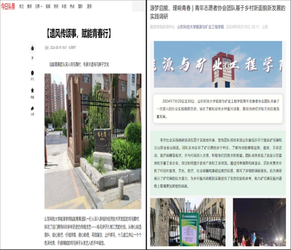 “青村创想,禾乡智行”团队结合实地调研与媒体宣传,为杨家山里乡村振兴添彩。这次实践主要展现了乡村的自然人文魅力,推动了生态旅游与绿色发展;“寻墨溯源”团队深入肥城,探访压缩空气储能示范与化工采卤总站,感受科技与农业交融,亲身体会智能绿色农业与能源产业的可持续发展之道。